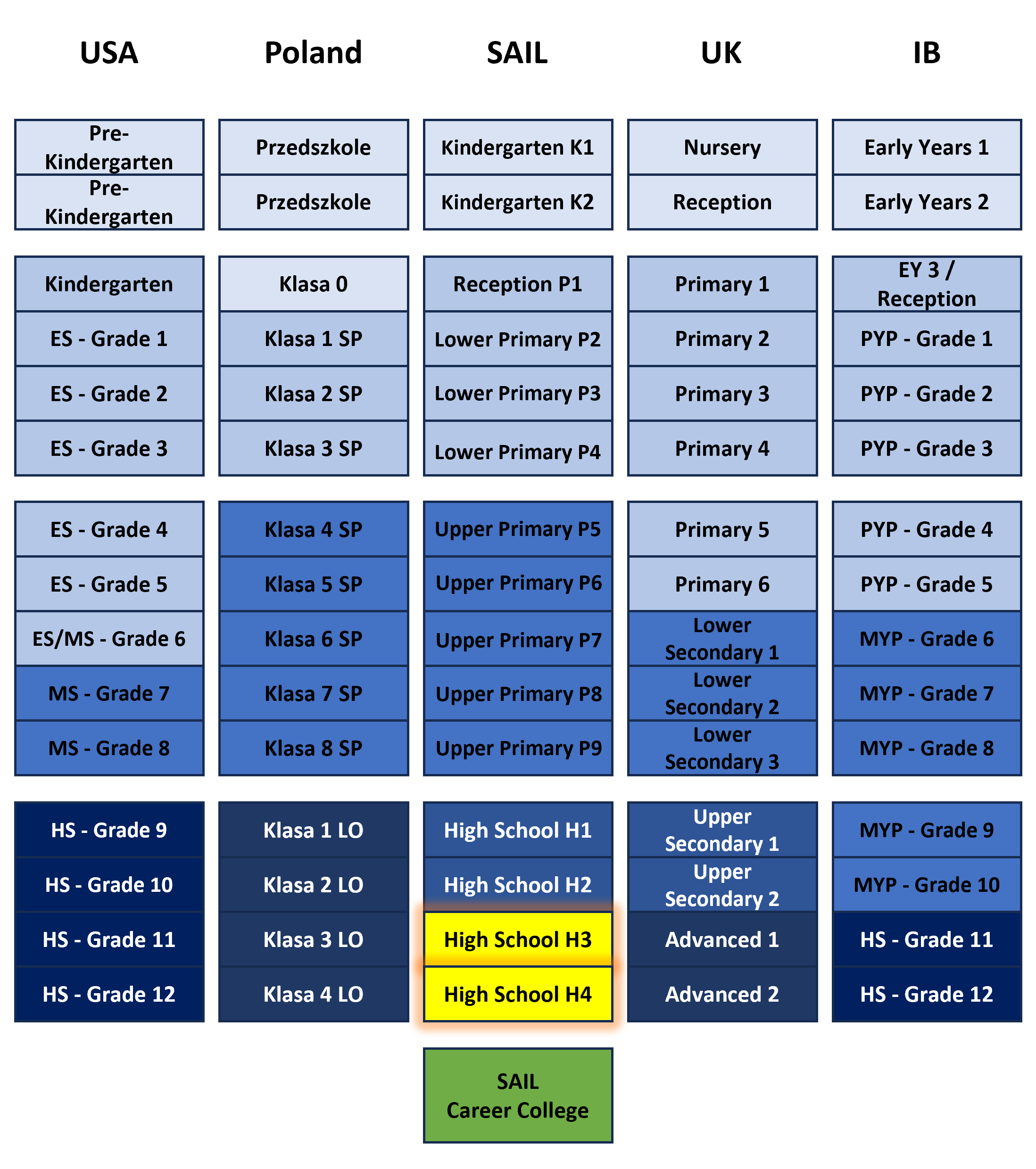 At the end of each semester, students receive a comprehensive report card with grades and detailed teacher comments for every subject. Parent–Teacher Meetings are offered twice each semester to ensure close communication and support. In the final year (H4), students may also choose to take Cambridge International examinations or the Polish Matura exam, though neither is obligatory for SAIL students.